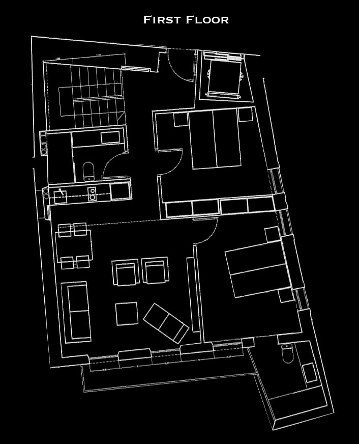 Both Floors as one Apt: 4 double bedrooms + living room 8 pax
