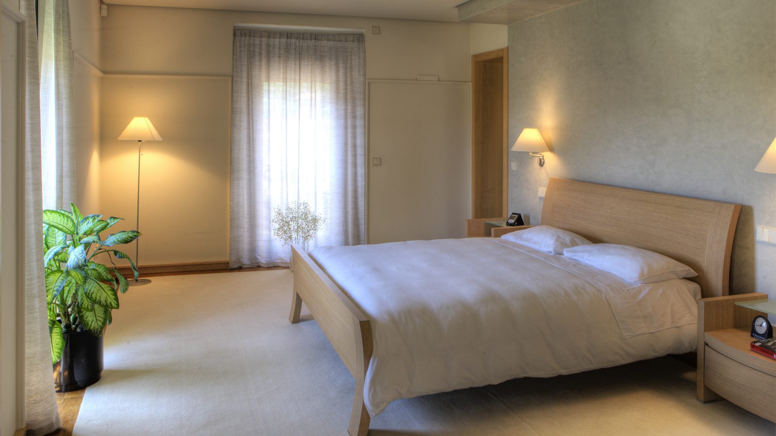 The fully-equipped kitchen is a cook’s dream. The vast open-plan living room is surrounded by windows and is accented by a grand piano. This house is ideal for couples, as most bedrooms include en suite bathrooms. For extended families, the guest wing offers flexibility and additional privacy. Across the courtyard, an artist studio can be used as an extra bedroom.